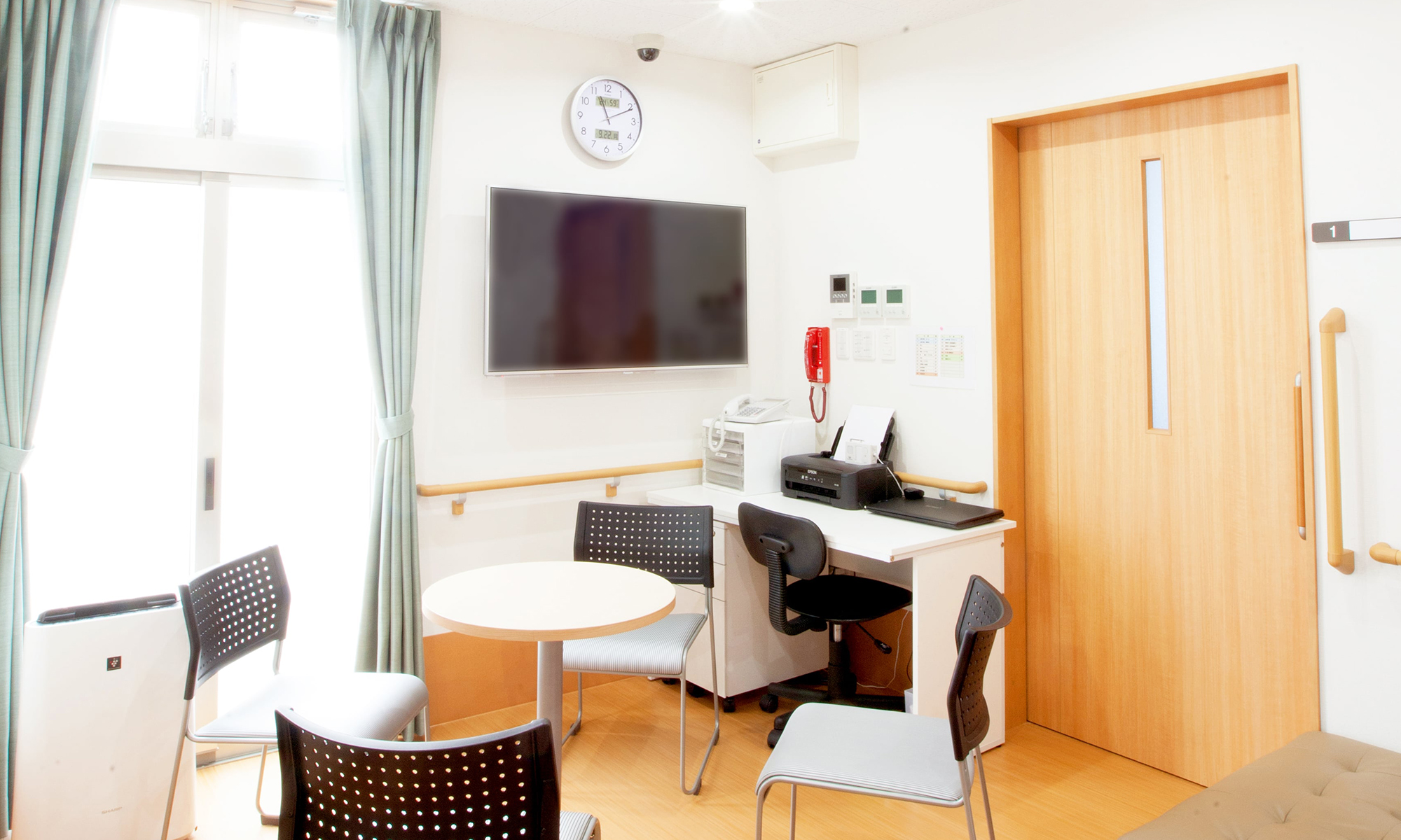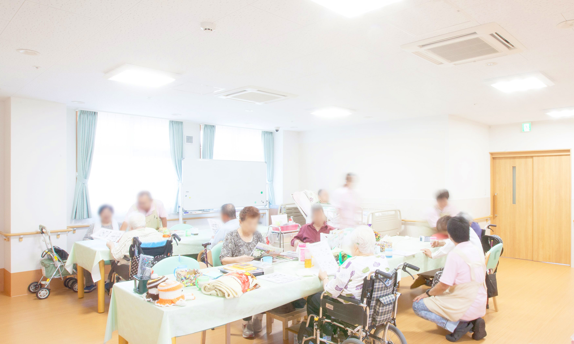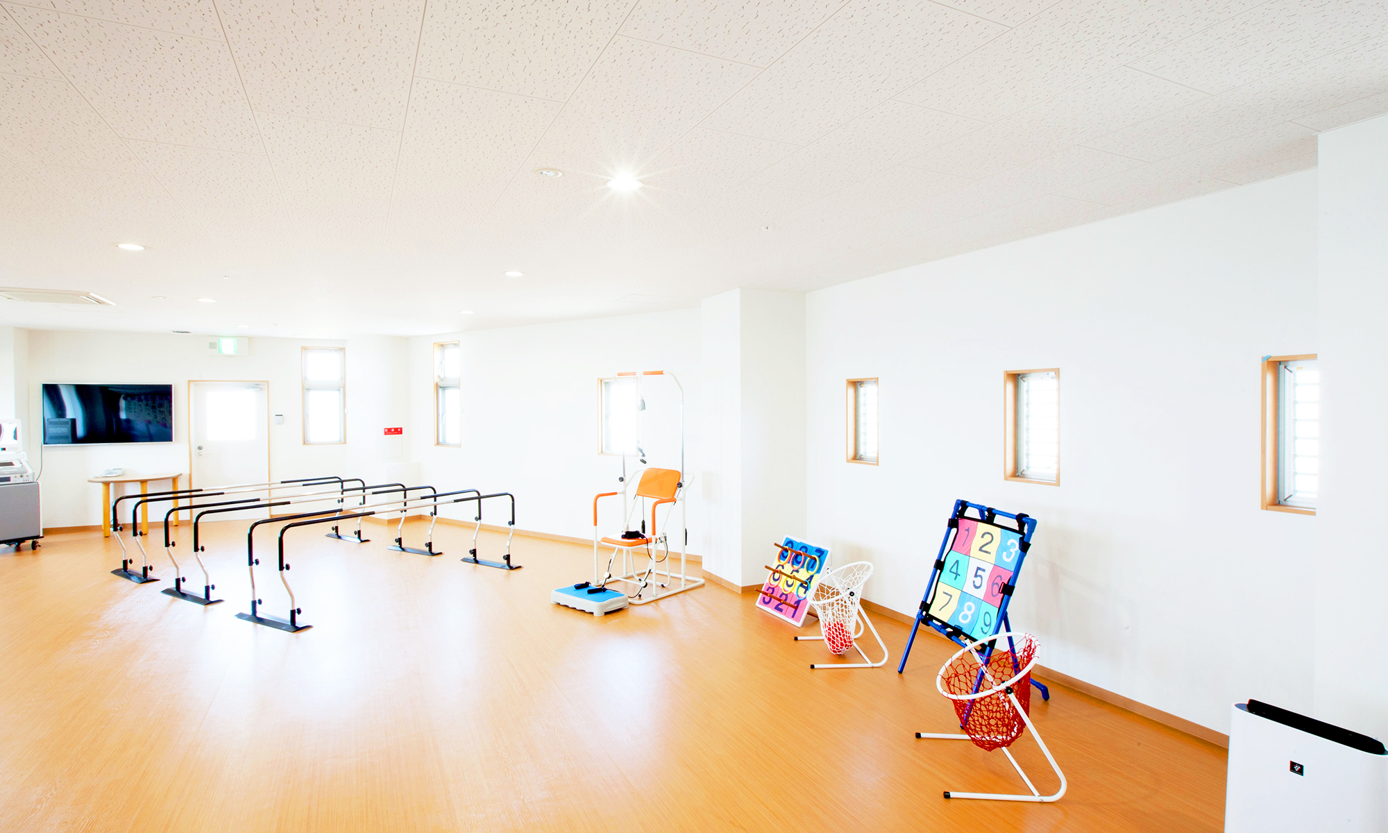 4階多機能ホールには毎日の運動、リハビリのための機器を取り揃えています。(白馬の里・恵、両施設の方が自由にご利用可能) 例として、電気治療器椅子、平行棒、ウォーターベッド、自転車こぎ、嚥下訓練にはカラオケ機を使用して、毎日カラオケ喫茶状態です。